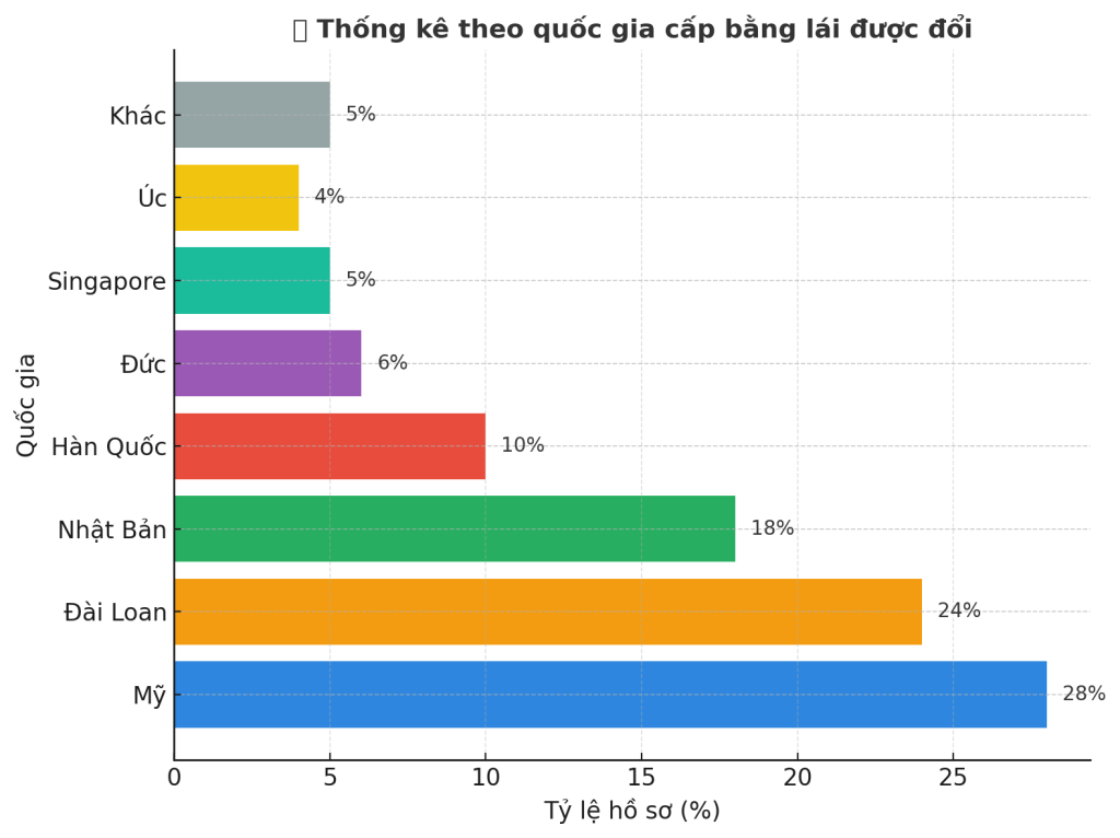 🌍 Thống kê theo quốc gia cấp bằng lái được đổi